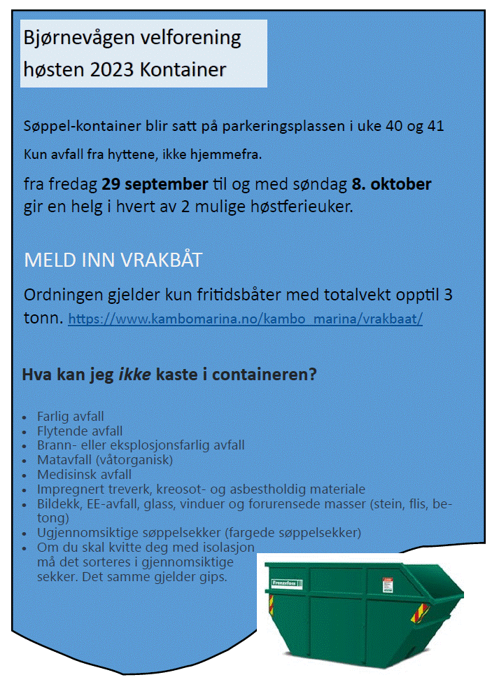 Årsmøte 2023 Bjørnevågen velforening Velkommen til årsmøte Bjørnevågen velforening sitt årsmøte avholdes 22. juli 2023, klokken 10.00 på hytte 512 (Styreleder Tor Endestad sin hytte) Les mer